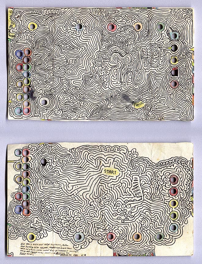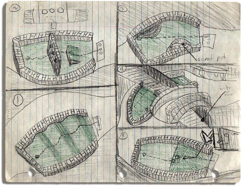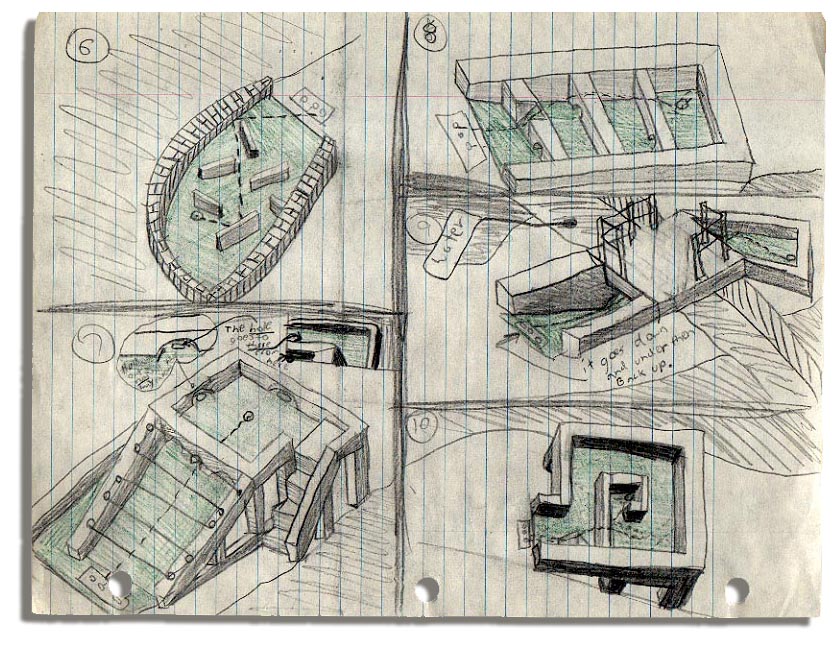 There were other things I liked to make and draw back then. I’d draw cruise ships, space ships, aliens, detailed buildings, and abstract 3D forms. Above is my miniature golf course. It turns out that in the 1930s, my mom’s uncle Harold and his buddy actually built a miniature golf course in an empty lot in Chicago to pay for school! They became dentists and doctors... I became an artist.