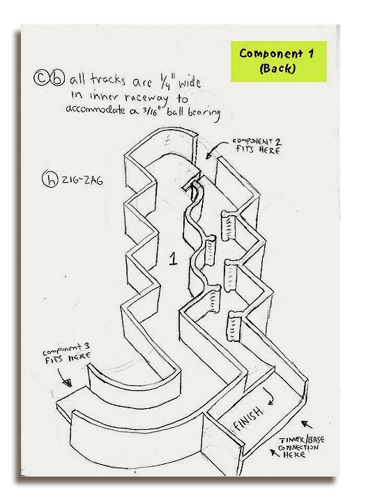 - The electronic “contact grids” must not be so easily affected by gunk (dirt) as is the case with the prototypes. When the ball rolls on them, the timer is not always triggered because the ball has telegraphed residue from the track to the grids. Is this problem going to be solved when the actual thermoplastics are used instead of the painted plastic in the prototypes?