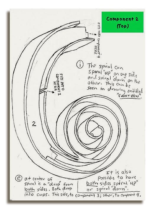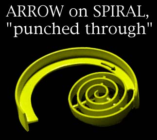 - There can also be arrows in a few other locations such as on the yellow SPIRAL. These can be of a “punch through” design, meaning it can be a “hole”. It can point the direction on both sides simultaneously. See attachment, “arrow_on_spiral.jpg”. This can apply to other appropriate areas as well, such as the larger sweeping curved section on the BLUE component.