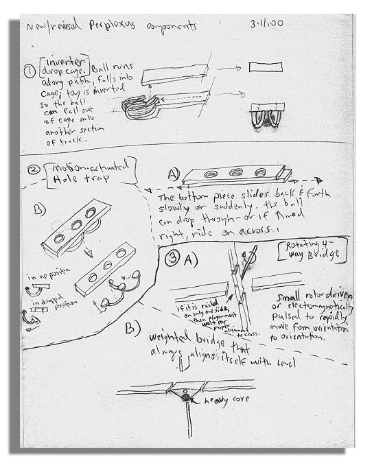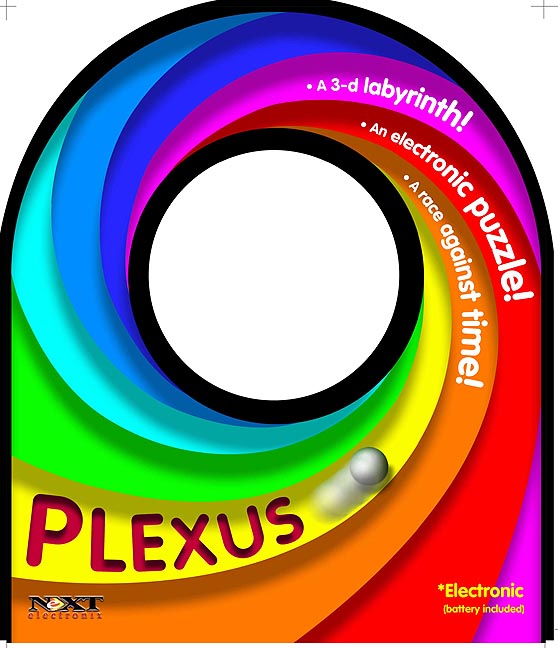 As I’m sure you can imagine, it was difficult to come up with a meaningful name. My whole family was trying to help with naming schemes, like Rollermaze, Escher’s Nightmare, Sphericon, RampRunner, Intellisphere, Exactoball, and dozens more! My wife Becky discovered “PLEXUS”. She worked from the root for “complex and perplexing”. “Plexus” means a complex, interconnected network. This was an exact description of my game.