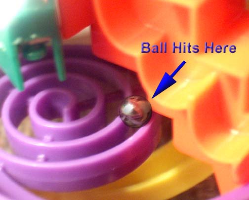 - Off of spiral on side one, on one of them (one of the samples), the ball runs into the steps. Ball hits here.