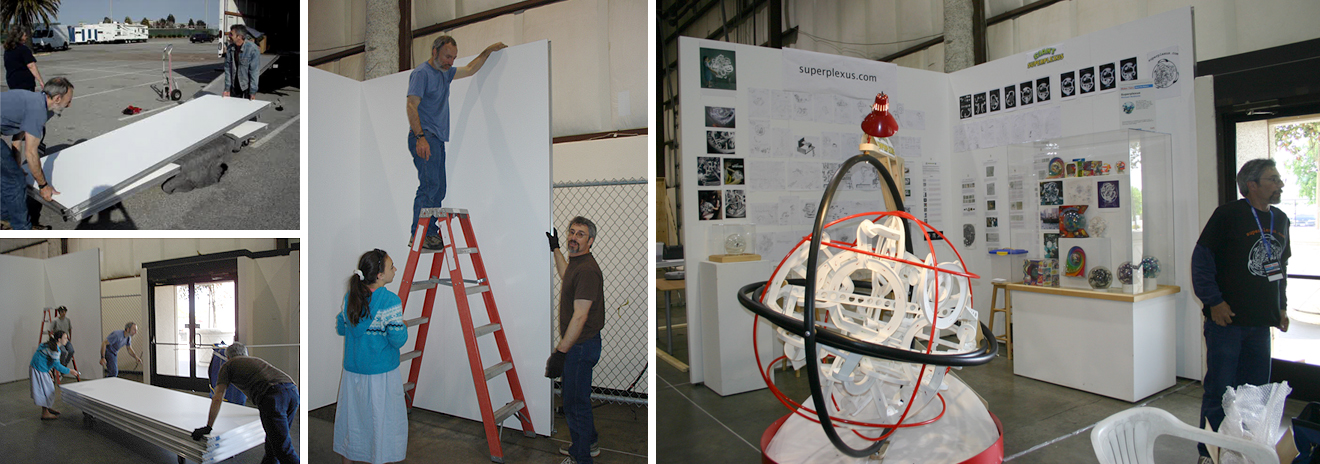 Hauling Superplexus Circles and my display of, “The History of Perplexus”, to the Maker Faire required a good-sized box truck. My wife, kids, and brother Tim helped in this endeavor. We set up walls and stands loaned from the SRJC Art Gallery (I was their Exhibits Specialist, a job I held for fourteen years).